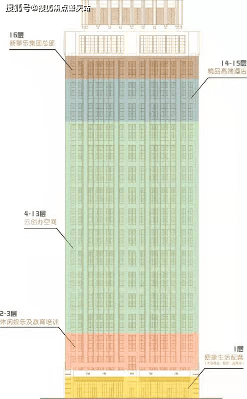 楼栋业态:1层便利糊口配套、2-3层休闲文娱及教育培训、4-13层云开办空间、16层新攀乐集团总部?。